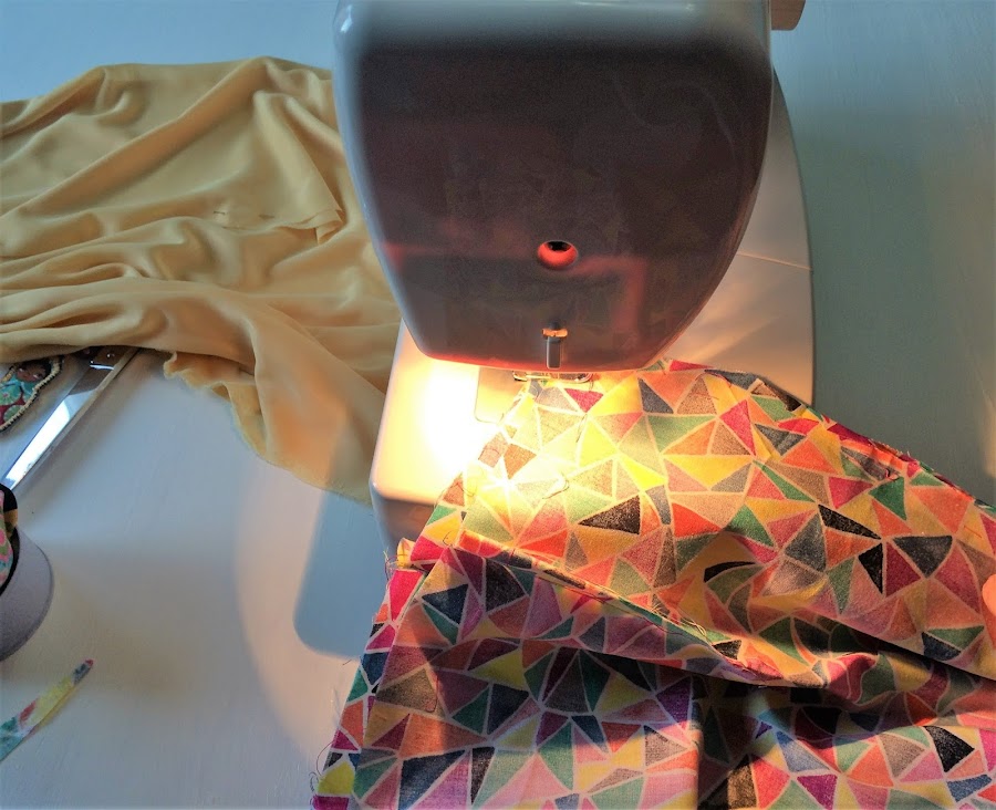 Ahora solo nos queda una costura en el bajo y con esto tendríamos nuestra falda terminada.
