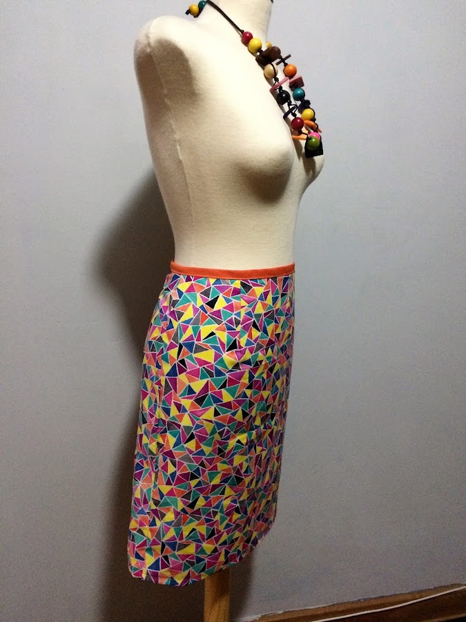 Como la tela es suficiente por si misma, para tener toda la personalidad del mundo, yo elegí un patrón básico de falda, una falda ajustada por la rodilla y ya esta.