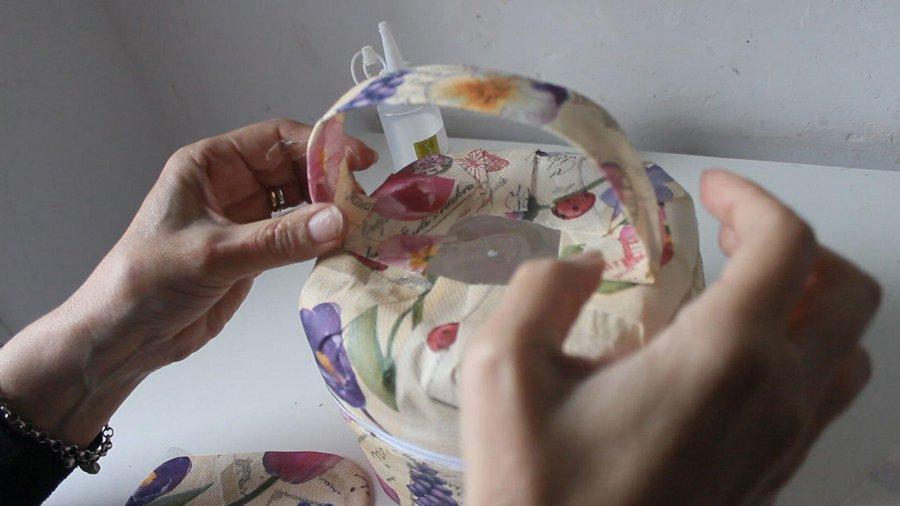 En la parte interna de la tapa sólo será necesario pegar algún motivo de la servilleta para darle una mejor terminación.