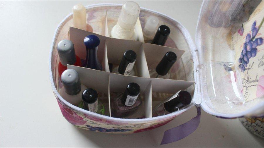 En caso de que uds. también quieran utilizar este estuche para guardar esmaltes para uñas será necesario hacerle unas divisiones internas para que los frasquitos no se desordenen al trasladarlos…