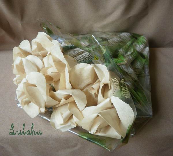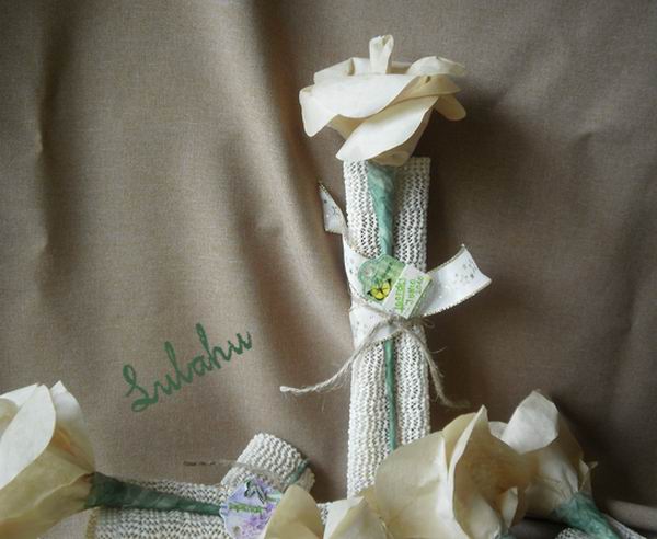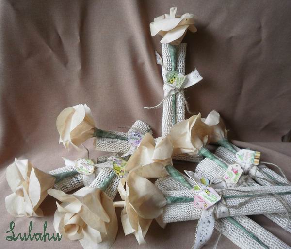 Dentro de cada paquetito hay un abanico y cada uno lleva una rosa de filtro de café