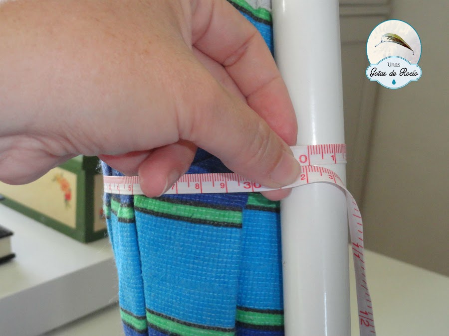 Si ya ni siquiera conservamos la funda original tomaremos medidas de la sombrilla con el palo al ladito y por el contorno más ancho, sin apretar la cinta métrica.