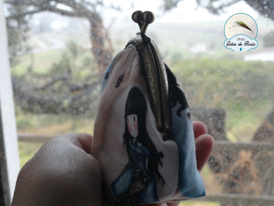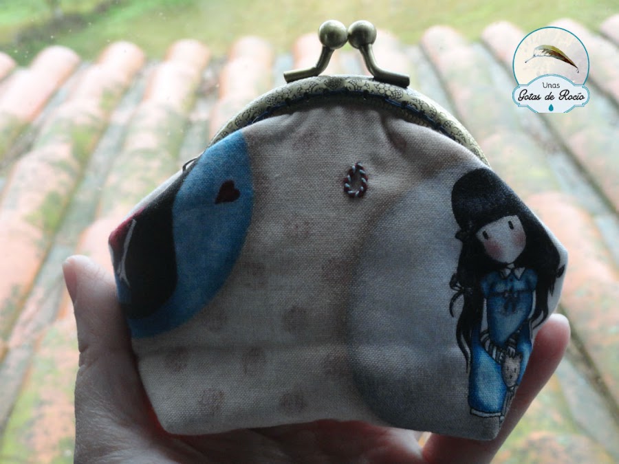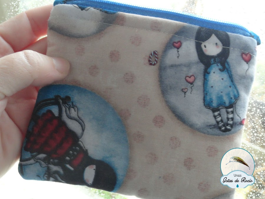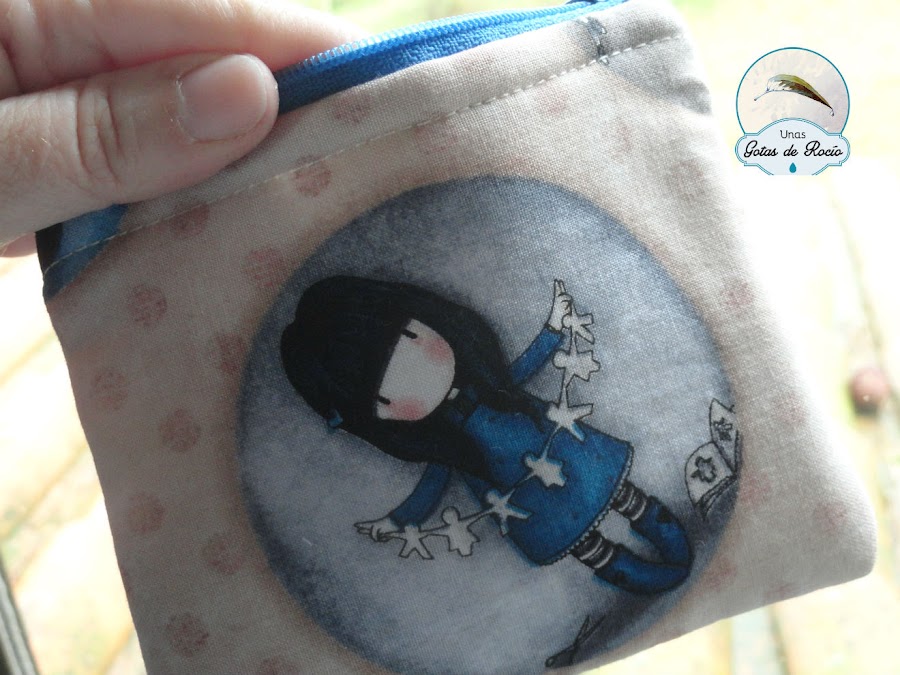 A ella y su hija le entusiasman las muñequitas Gorjuss y he apurado la tela que me quedaba en un monedero de boquilla, una carterita y un neceser de camuflaje con cremallera.