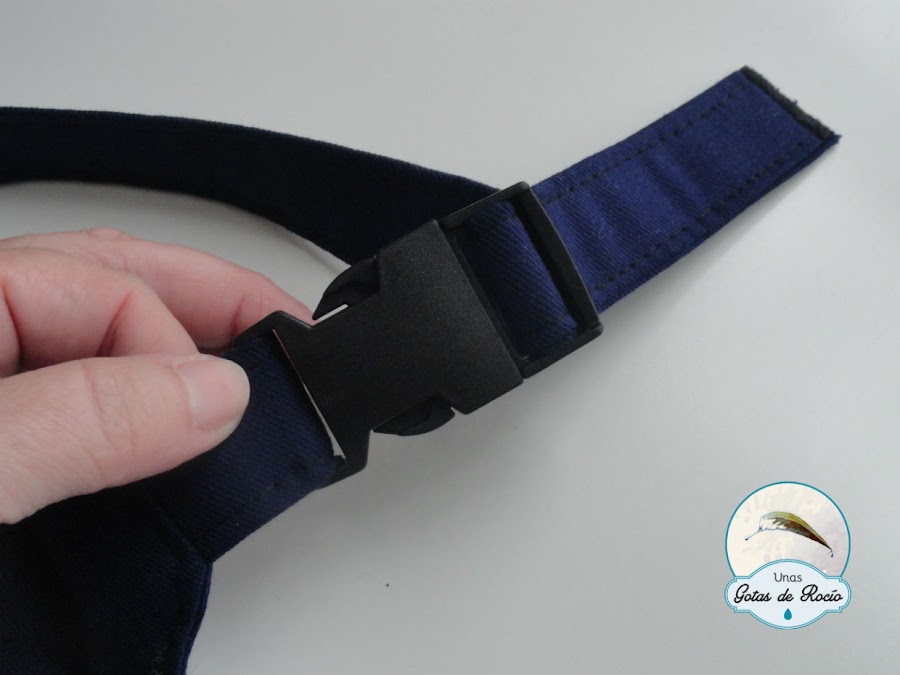 Y por último os quiero enseñar un nuevo reto que me propuso Mar para su hijo de 9 años, discreto y poco amante de los estampados o colores detonantes. Su idea fue una pequeña riñonera y mi propuesta: loneta azul, discreta y sufrida.