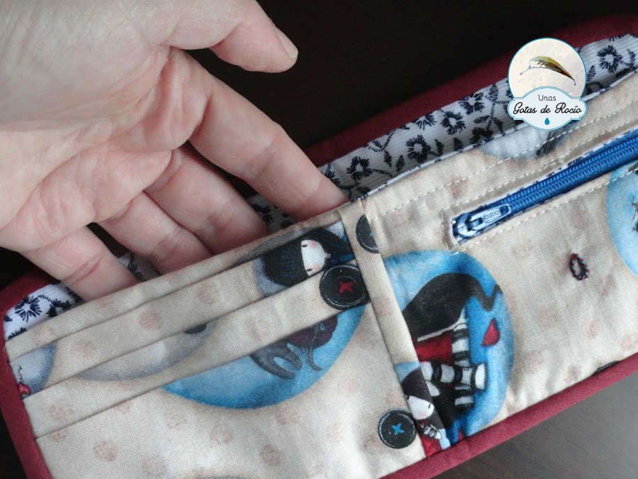 Y ahora por dentro: tarjetero, bolsillo lateral, billetera y monedero con cremallera.