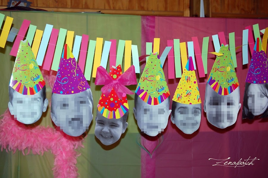 a la cumpleañera le puse un lacito en el gorro para darle un poco más de protagonismo