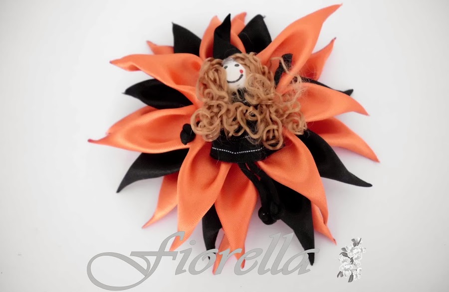 Otra idea con la misma flor adornada con una brujita que compré ya hecha.