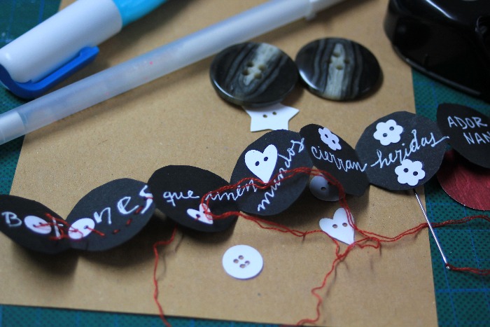 Tomé 3 colores y ya está, porque no quería saturar un espacio tan reducido, los protagonistas claro, son los botones, que unen, cierran, adornan...
