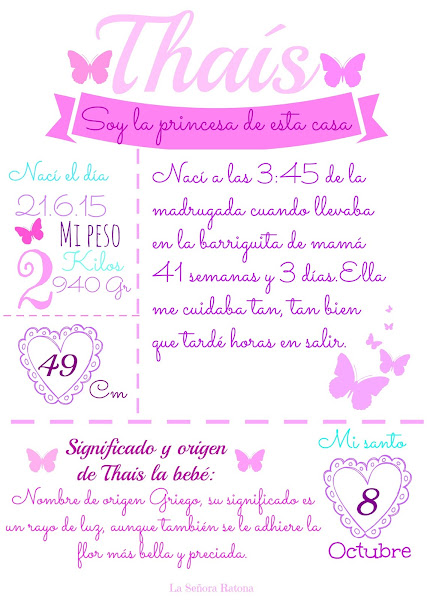 Lamina realizada totalmente para la ocasión, diseño único para una bebé única y totalmente personalizado y por lo menos para mí un regalo precioso, no sólo para un recién nacida si no para poner en el cuarto de cualquier niño o niña.