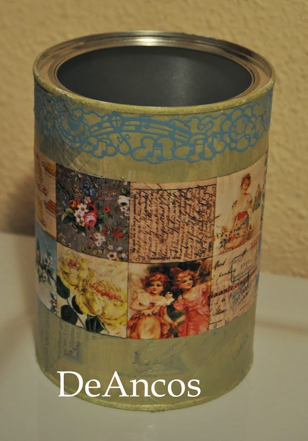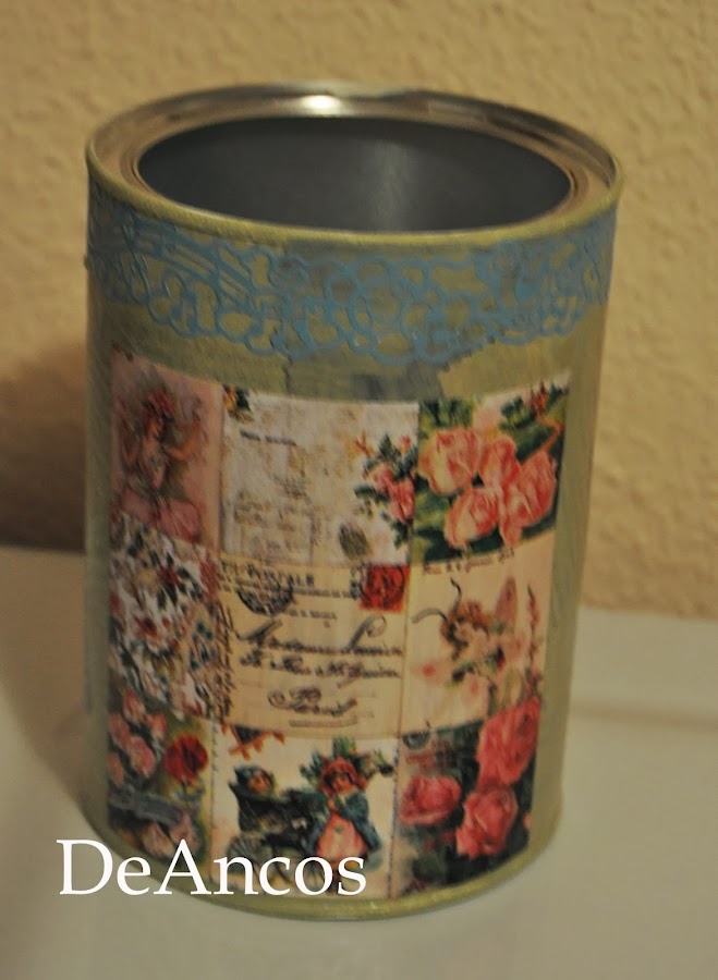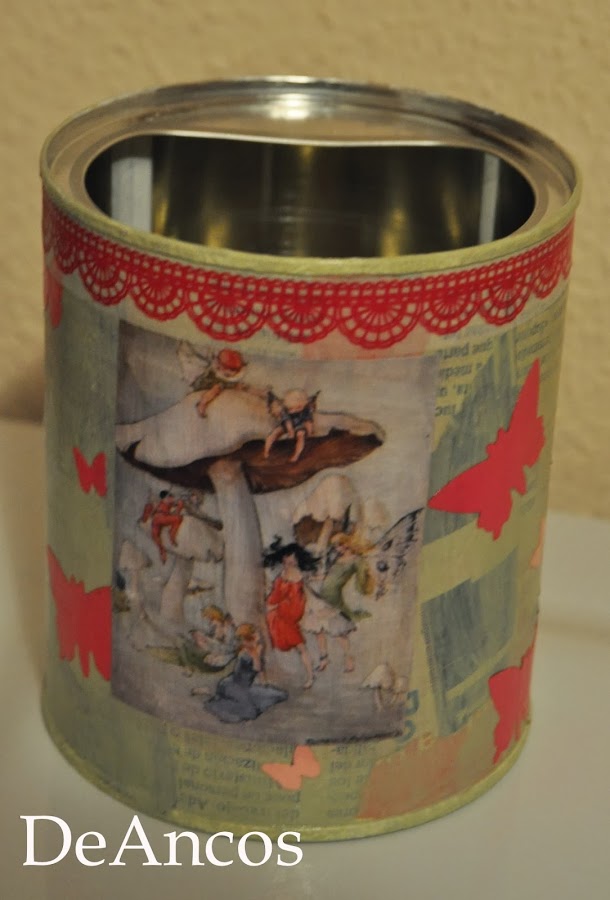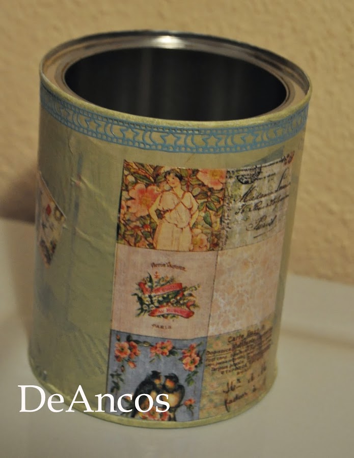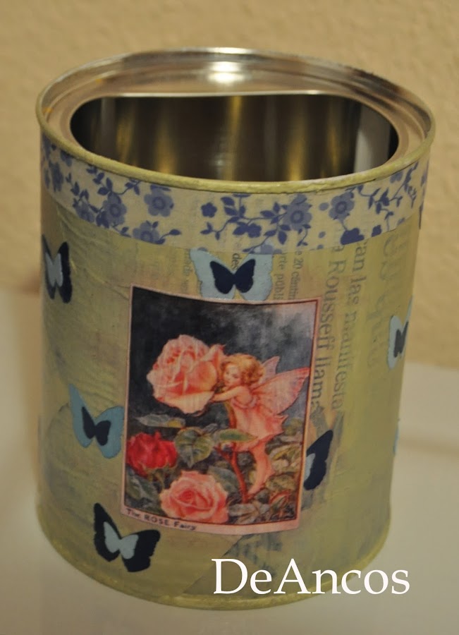 Yo reciclé unas latas para unas conocidas de una residencia de mayores con el fin de que las utilizaran para poner sus cepillos, peines,... o unas flores. Son muy sencillas porque me puse el mismo día a hacerlas, si no, no hubiese tenido tiempo más adelante.