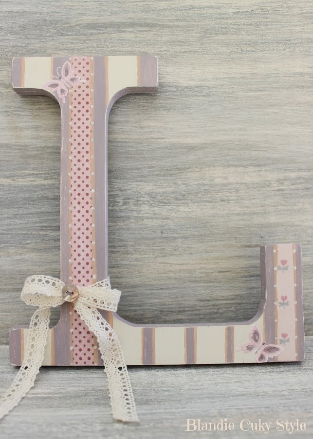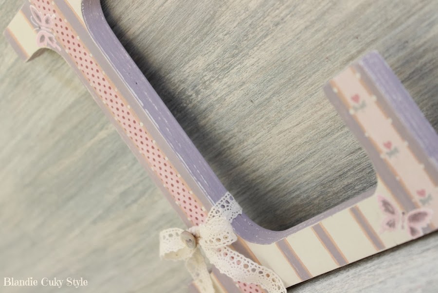 Las letras como decoración están muy de moda; a lo largo del proyecto de Blandie ya me han pedido unas cuantas, y cada vez de estilos diferentes. Pero aún, no había tenido la oportunidad de decorar una letra para una nena.