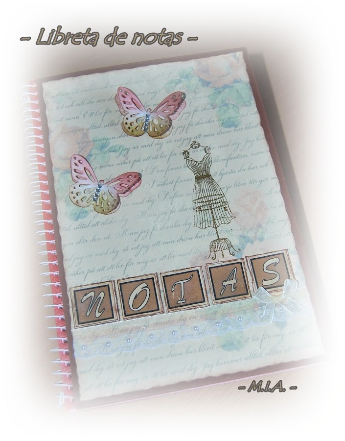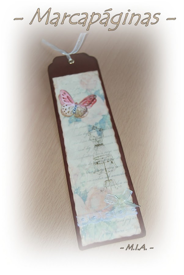 Le acompañçe con un marcapáginas con el mismo paple base, una mariposa y los adornos de lazo y encaje-.