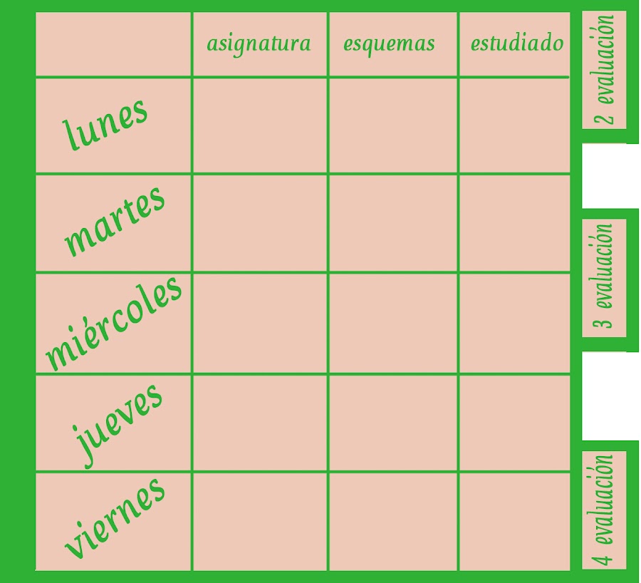 Y mi hija pequeña me pidió que le hiciera una libreta con la que pudiera llevar al día los exámenes que iba a tener en cada evaluación, y si había hecho resúmenes y estudiado cada asignatura.
