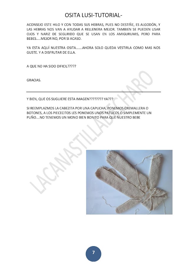 A mi me ha gustado mucho y tenia muchas ganas de hacer un peluche con dos agujas, ya que aún no he aprendido a utilizar las agujas de ganchillo. EL tutorial está muy bien explicado y es fácil de hacer, aunque montarla y rematarla tiene su tiempo con tantos hilos que apuntar jajajaja