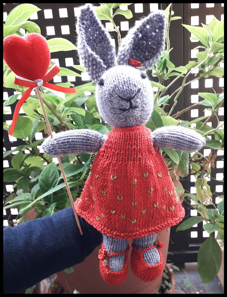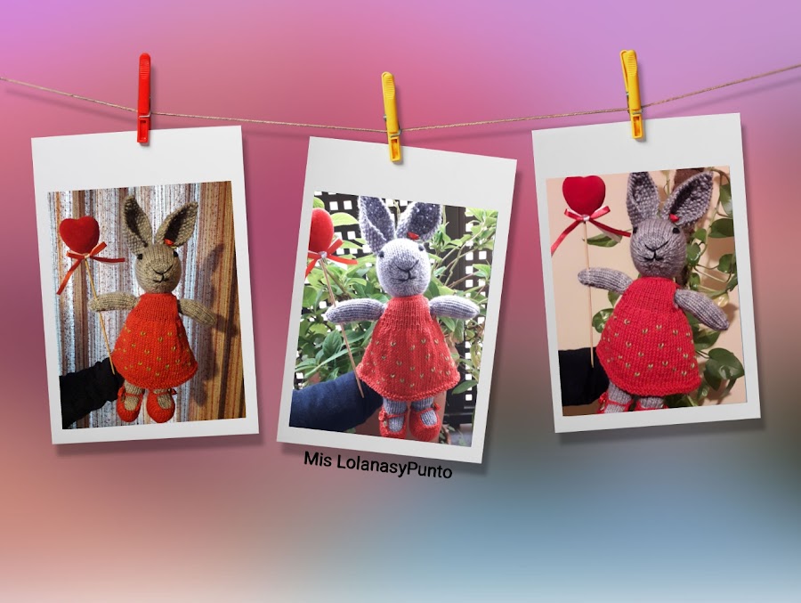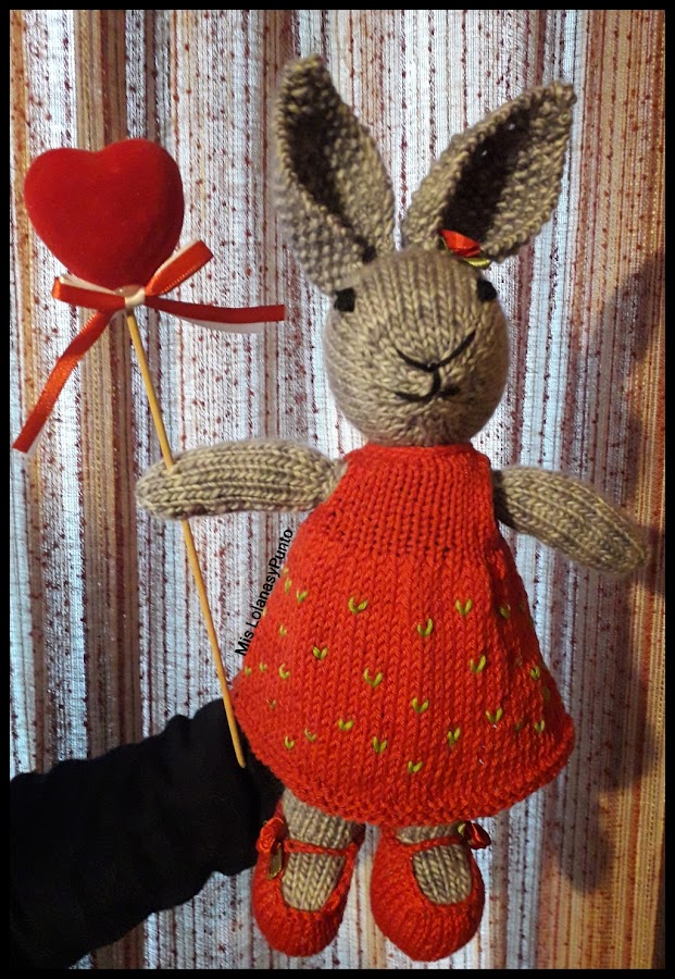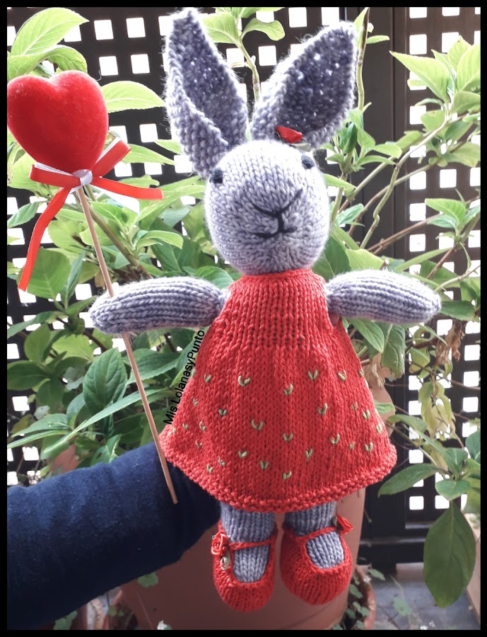 No podía olvidarme de mi sobrina Laura. Ella tenía que tener su conejita tejida por su tía, y aquí está.