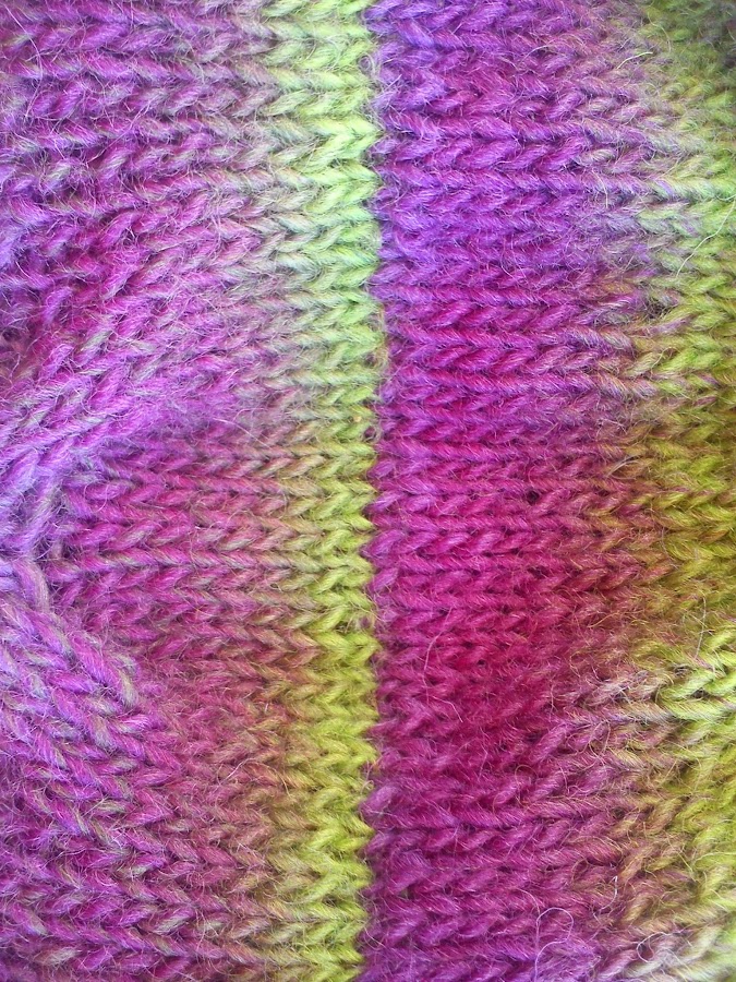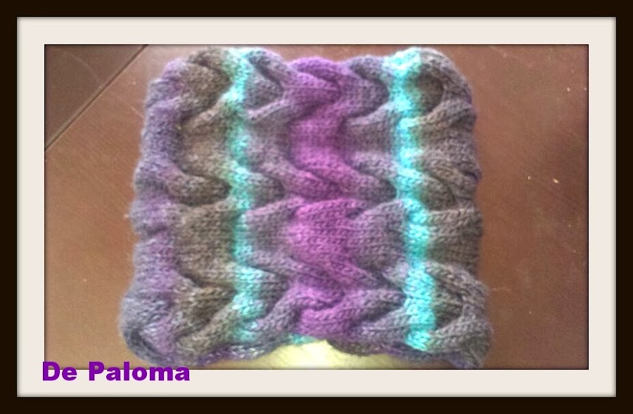 Continuamos tejiendo estas 12 vueltas por un total de diez veces. Cerramos del derecho los puntos con hilo de desecho y cosemos con la técnica del graffting, remallado o costura invisible .Pincha aquí. Quedaría una unión perfecta y ¡¡ no se notaría donde está hecha!!... a no ser por el cambio de color de la lana, jeje.
