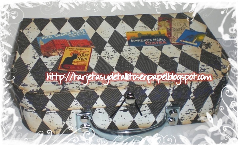 La idea de este original proyecto es de Eulalia, una mujer muy simpática y que tiene ideas geniales. Se basó en una vieja maleta que tenía en casa y hasta la fecha creo que ya perdió la cuenta de cuántas ha realizado pero es que son monísimas. La verdad que yo la pasé genial en el taller, lo disfruté muchísimo y absolutamente encantada con todo lo que hay en la tienda.