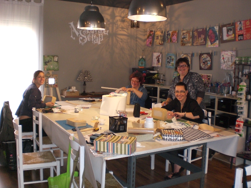 Aquí están las otras talleristas de ayer: Julia, Montse, Inma y Eulalia, en Natural Scrap