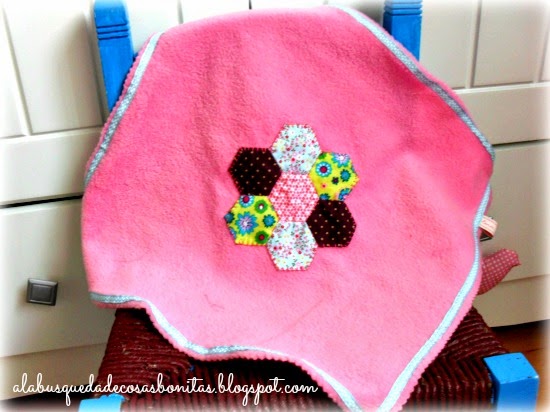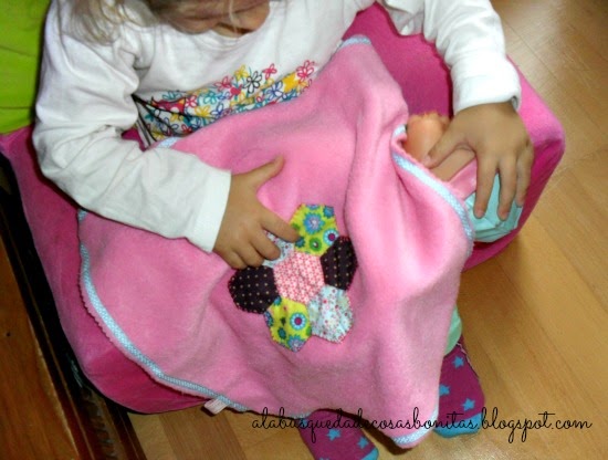 Para confeccionarla, he usado un retal que me sobró de la mantita polar que le hice estando embarazada de ella: