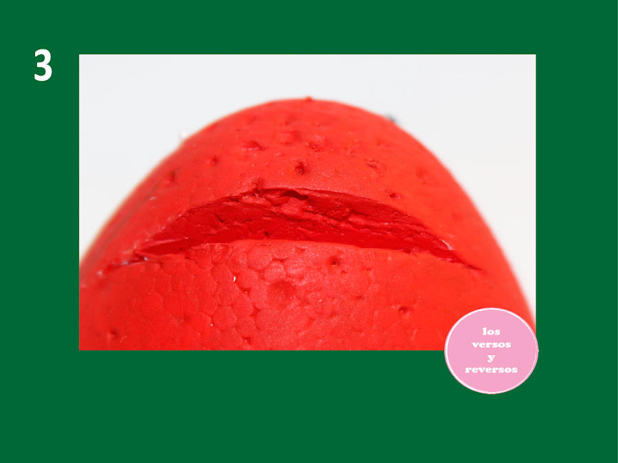 Primero, corté el huevo con cuidado a la mitad con el cutter.