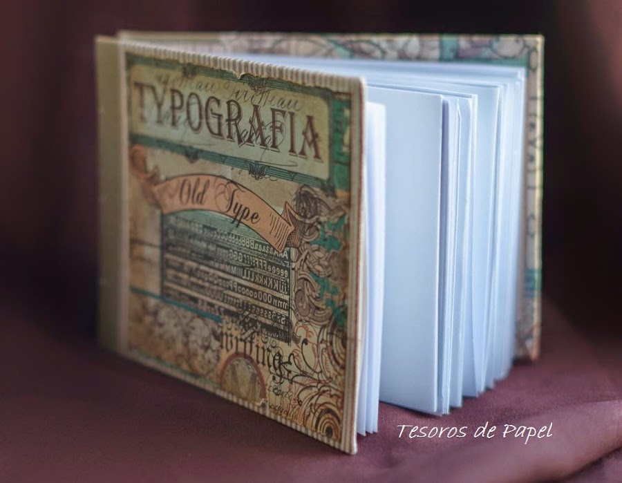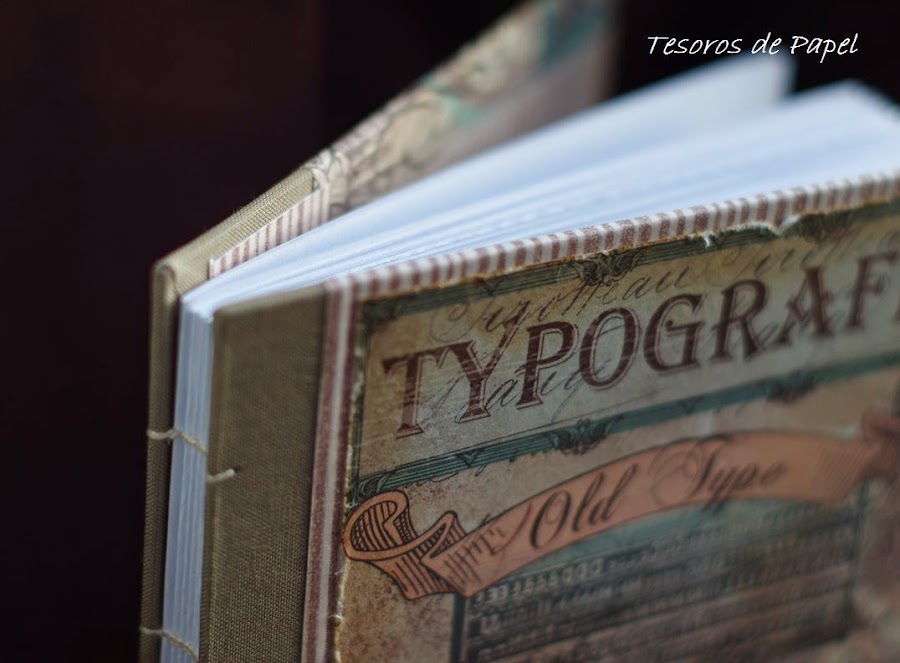 Con cosido copto (que por cierto, tengo que mejorar un poco la técnica), y una portada con una lámina al que se le ha dado un aspecto semi-envejecido.