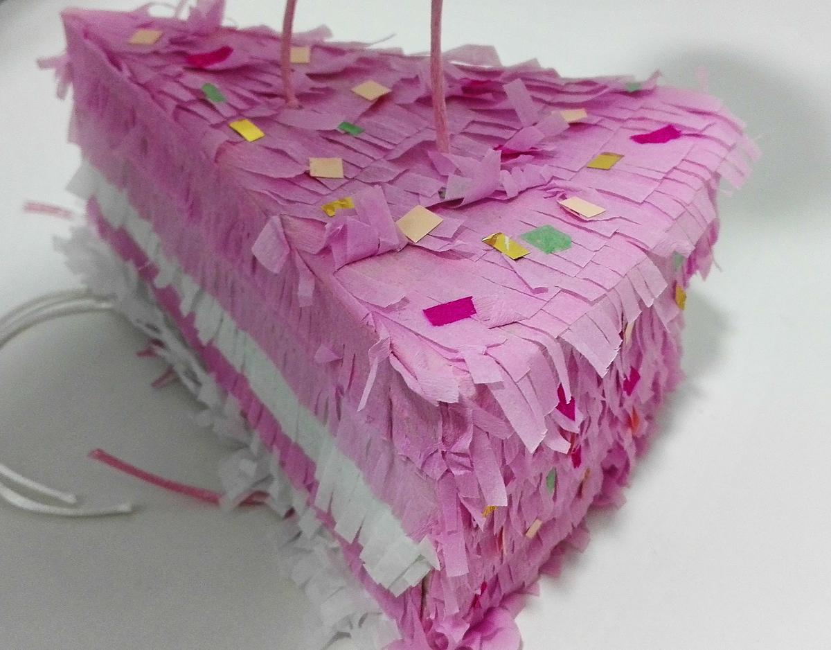 Y por último, pero no menos importante, rellenamos las piñata con lo que queramos. Yo me vine arriba recortando trocitos de papel de colores y como aquí no se tira nada, lo metí también dentro de la piñata, como si fuera confeti. Una vez relleno, seguís enganchando en la base tiras de papel rosa (o el color que hayáis elegido).