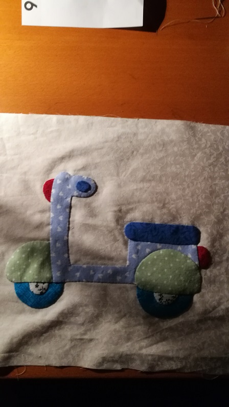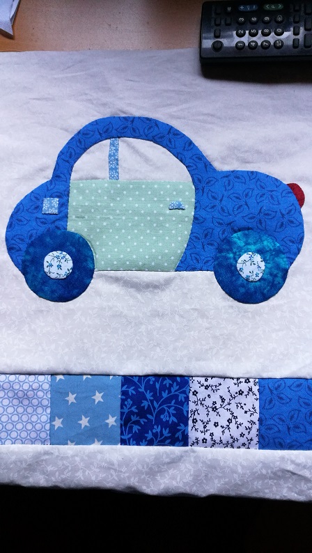 Ja l"he acabat, os ensenyo alguns detalls, la tela es blava el fil blanc Ya lo he terminado, os enseño algunos detalles, la tela es azul el hilo blanco