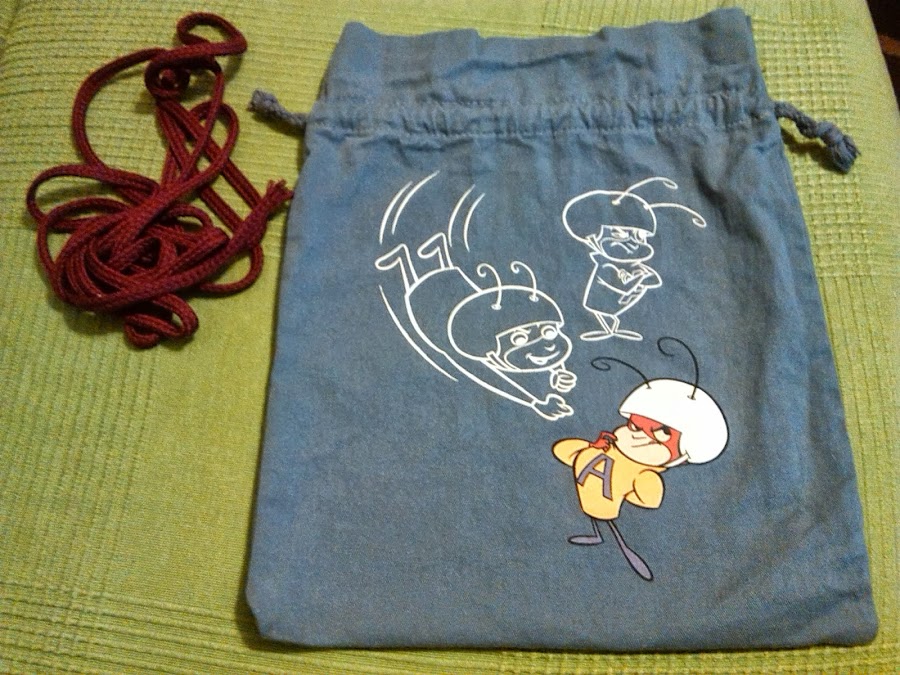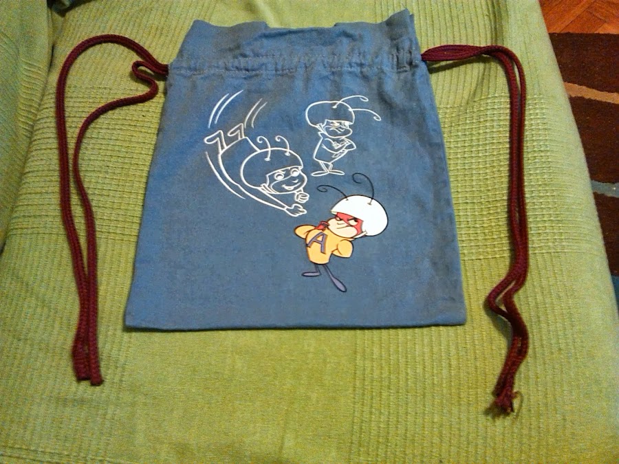 Pasamos los cordones de las asas por el agujero y cosemos la costura. Le damos la vuelta a la bolsita y se ha convertido la bolsita en una preciosa mochila para llevar la merienda.
