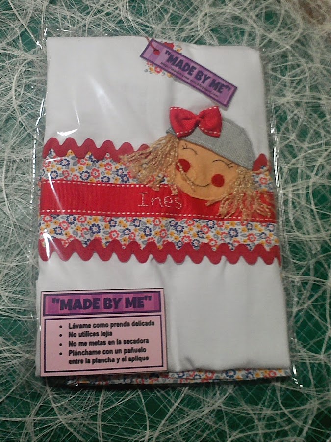 Bueno...seguimos con los conjuntos de cubrepañales y camisetas de muñequitas de "madebyme"...la verdad es que son super alegres, y encima, personalizadas con el nombre de los peques.