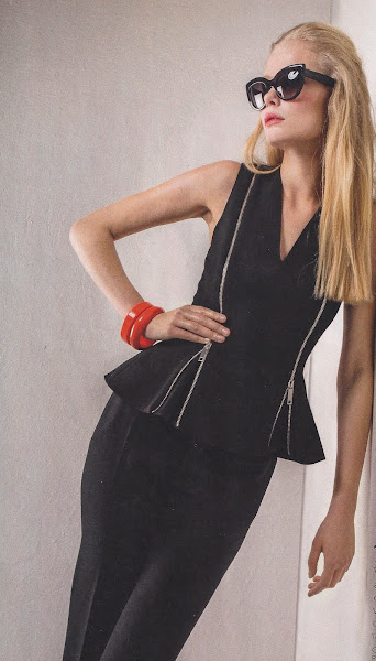 Bonita combinación de tres piezas en diferentes tejidos y estampados, con el único nexo del blanco y negro. El pantalón nº 2 lo apunto a la lista. La costura de atrás permite un ajuste muy preciso y favorecedor.