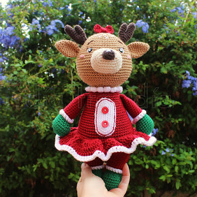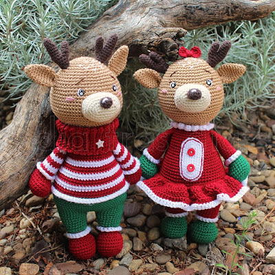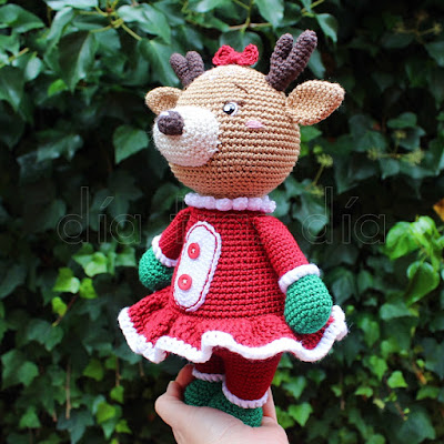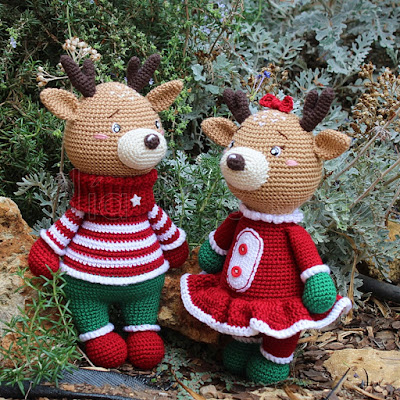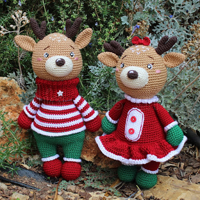 Pero resultó que el reno no estaba solo, sino que también existía una versión femenina, con la que poder tejer la pareja completa. Y se me ocurrió que podía hacerle los dos y así le daba una agradable sorpresa, ya que ella no se espera que le vaya a hacer los dos muñecos.