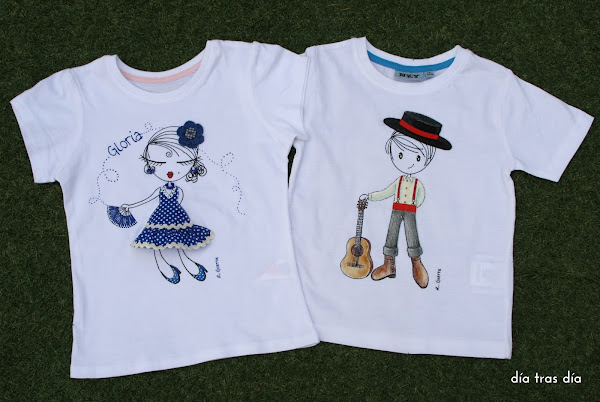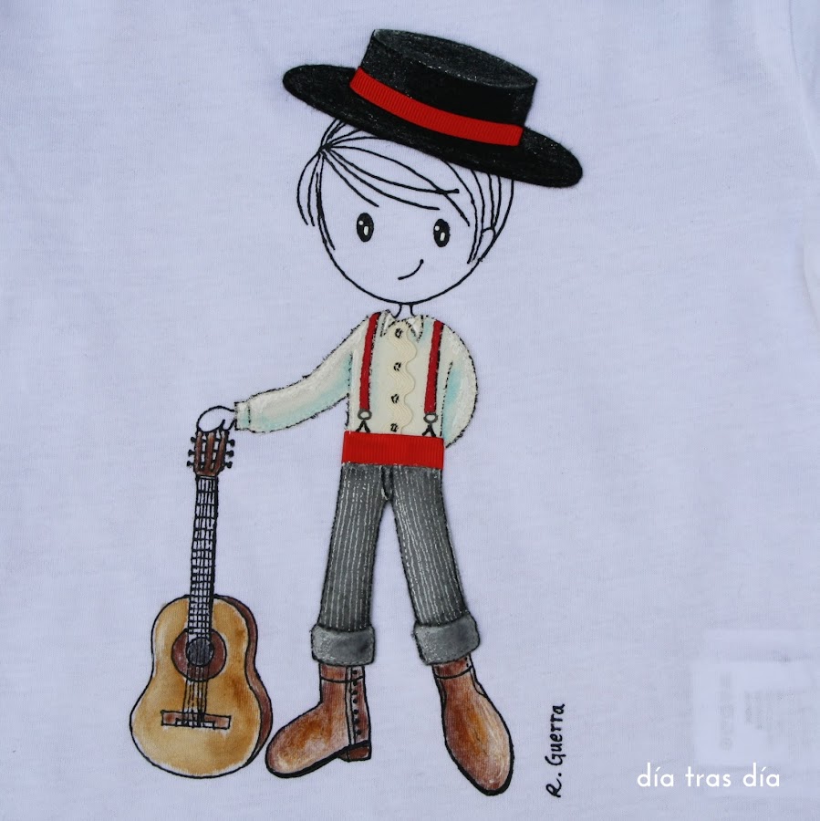 Al preguntarme por las camisetas de flamenca, me dijo que si tenía algún modelo para niño. Y como ya anteriormente había hecho la versión flamenco para niño, le enseñé foto y me pidió una para su peque.