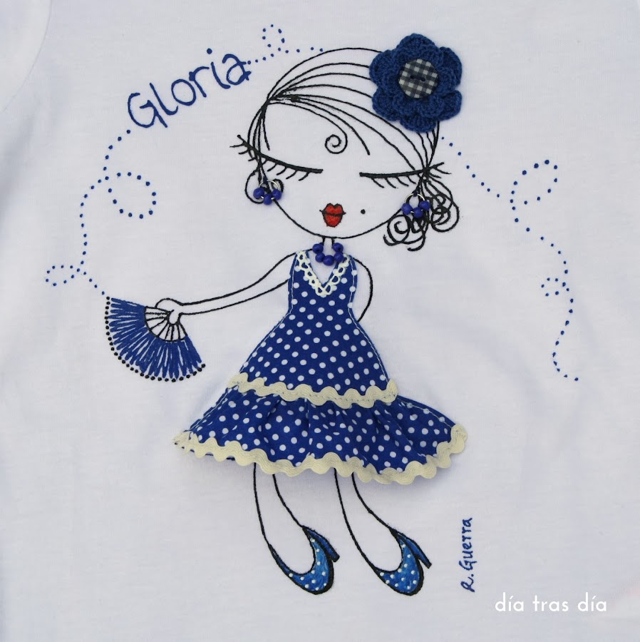 Basilia se puso en contacto conmigo para pedirme una camiseta modelo Ro-ro flamenca para su peque Gloria. Y esta fue la camiseta que hice para ella, personalizada con su nombre: