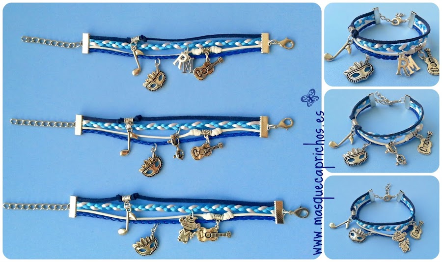 Su pasión compartida es el carnaval y por ello no podían faltar una máscara, una guitarra y una nota musical que son los elementos comunes de las tres pulseras. Después cada una lleva el elemento diferenciador, que son las gafas, la muñequita graduada y las letras RM, que simbolizan el lugar donde se conocieron y se gesto esta inseparable amistad.