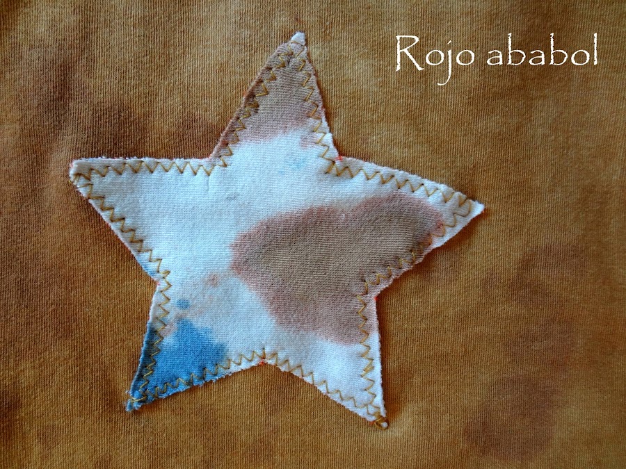 Y un pequeño detalle de color para romper. Una estrella cosida con zig zag, también en sudadera fina, y con un "manchado" parecido al de la ranita pero en otros tonos.