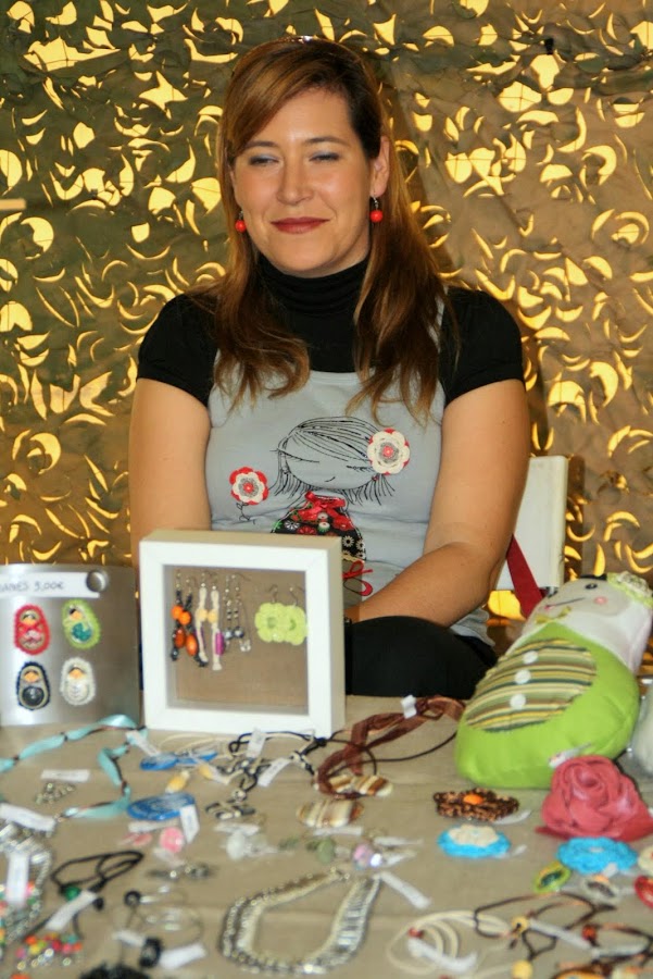 Y aquí me podéis ver con ella puesta, luciéndola ayer en el Mercadillo en el que estuve (aunque lucir, lo que se dice lucirla, se lució poco porque, dicho sea de paso fue un auténtico fracaso: un 0 enorme para la organización del evento)