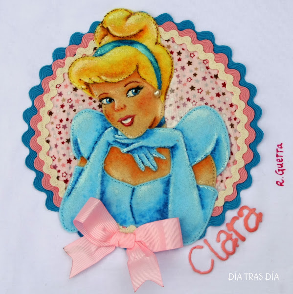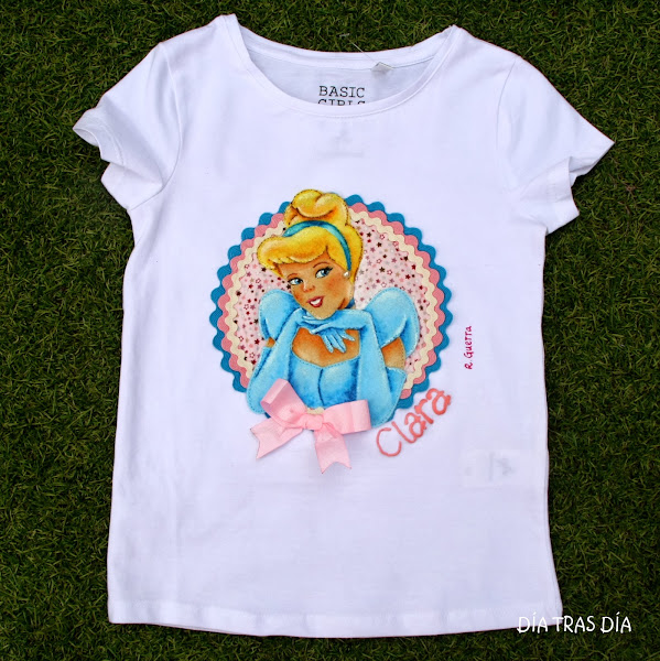 El personaje favorito de Clara, que así se llama la peque, es Cenicienta. Y tras ver distintas posibilidades, encontré una imagen que me gustó mucho y así fue como quedó finalmente la camiseta:
