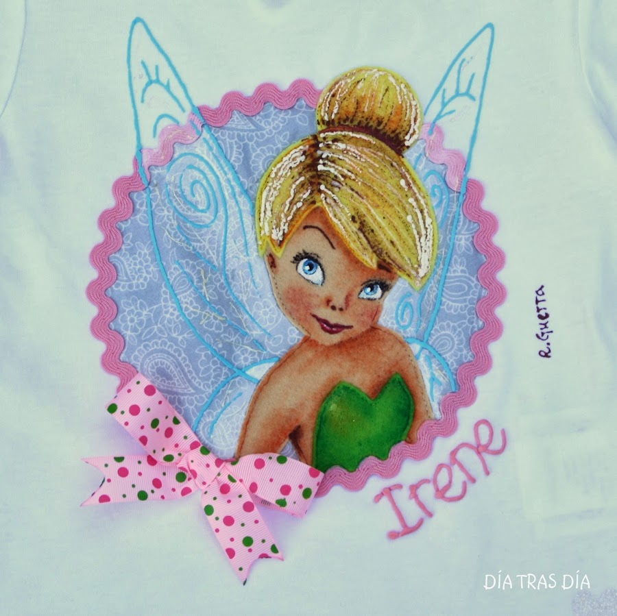 Y aunque no se pueda considerar estrictamente como una princesa, al ser otro personaje de Disney de las que tanto gustan a las niñas, os enseño junto con las anteriores esta camiseta en la que Campanillaes la protagonista: