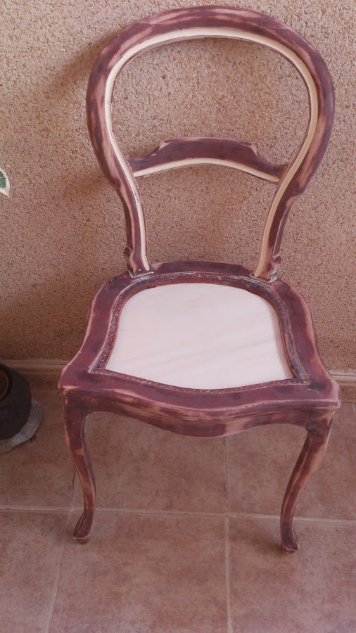 Después de una buena lijada ,pues no había manera de sacar la pintura que traía,en lugar de cinchas decidí ponerle una madera en la base. la observe y no vi indicios de carcoma, pero para asegurarme la impregne y así se quedó durante mucho tiempo....