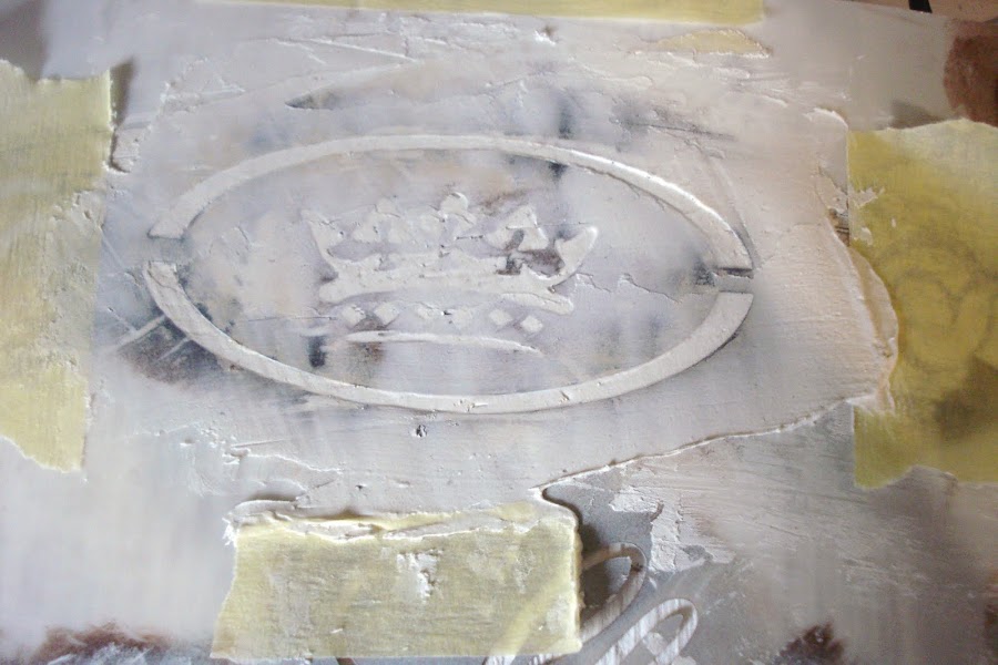 Una vez seco lijo un poquito y vuelvo a poner la plantilla para pintarlo de negro.