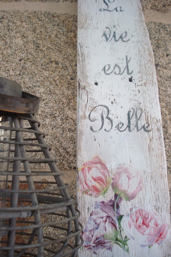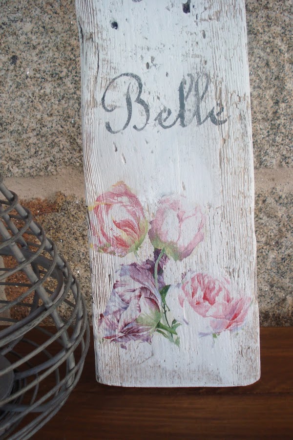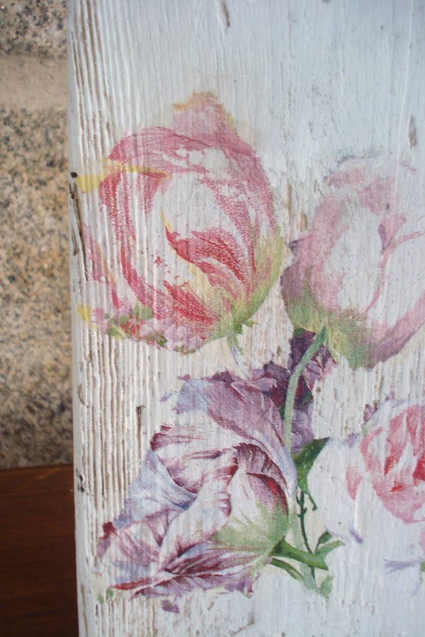 En la parte de abajo de la tabla un decoupage con las flores de una servilletas.