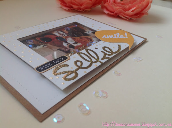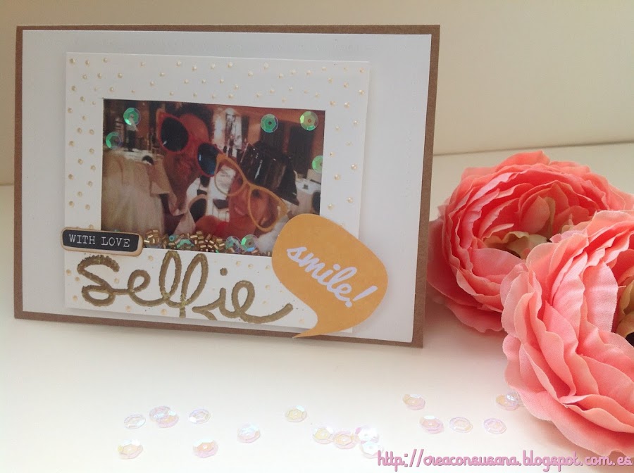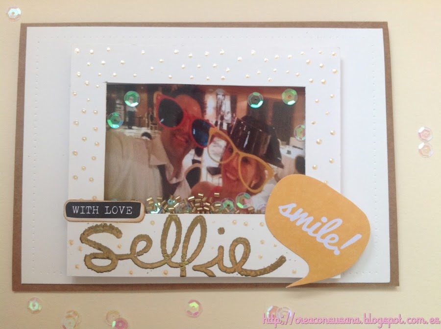 - Una de mis tiendas favoritas Un&Scrap, nos retan a realizar una shaker card, es decir, una tarjeta con una parte en movimiento.