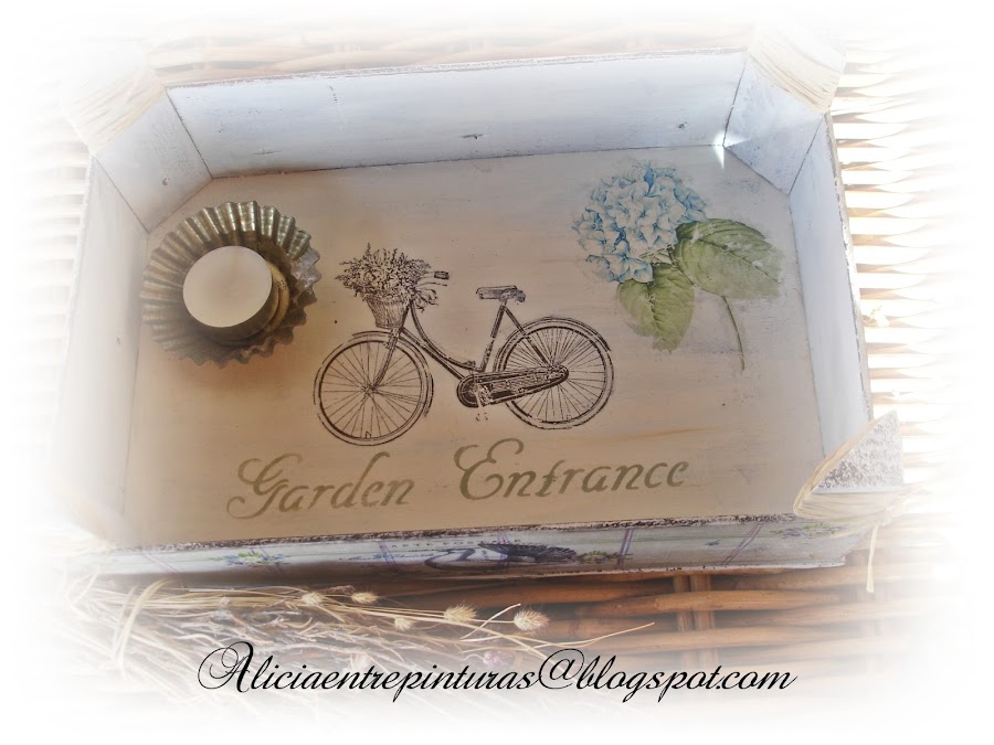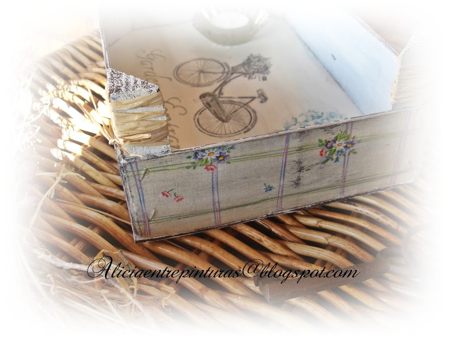 La bici y la flor: transfer, las letras stencil y la parte exterior es decoupage con servilleta,una perfecta combinación.