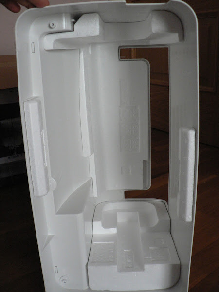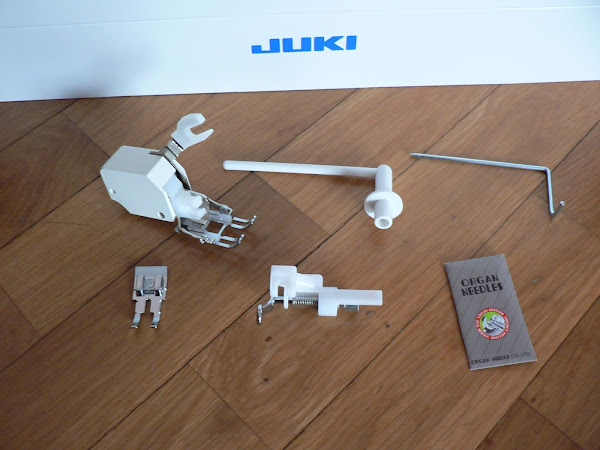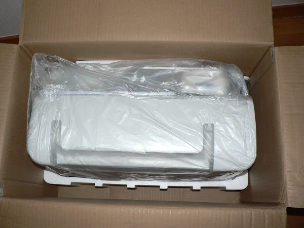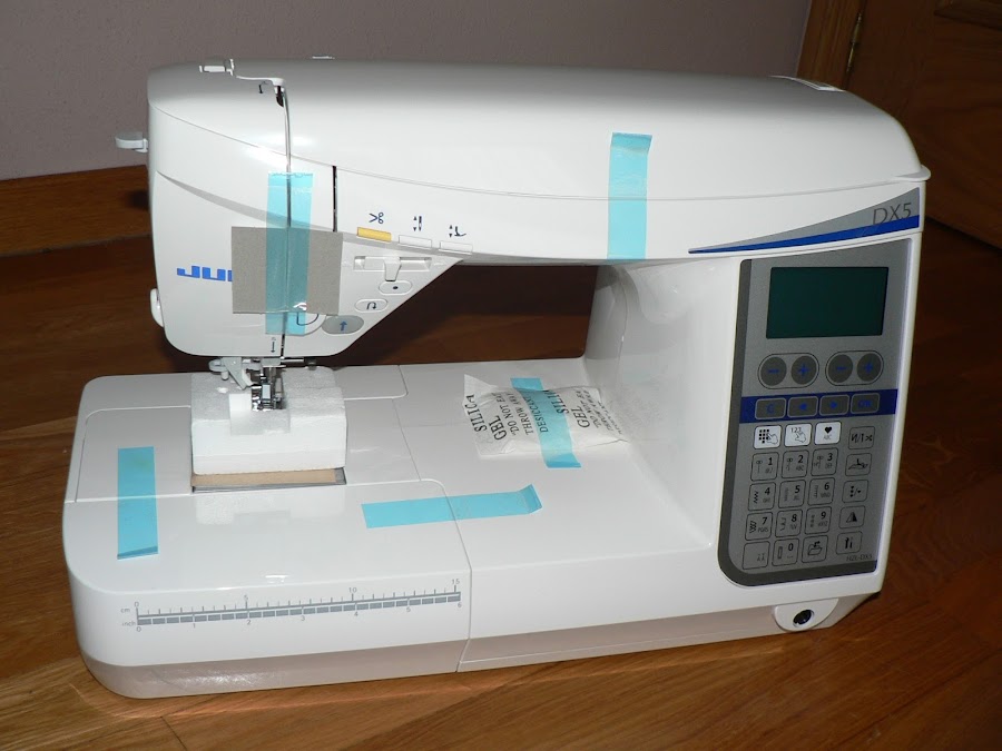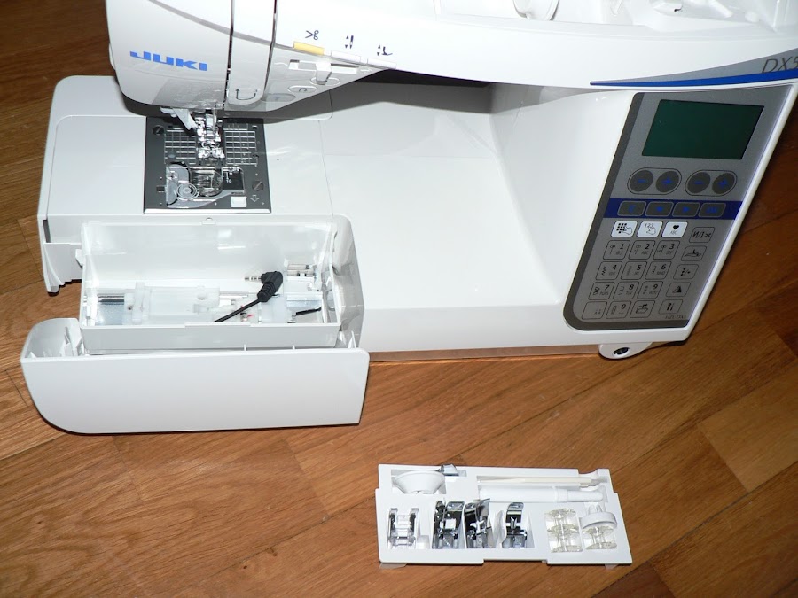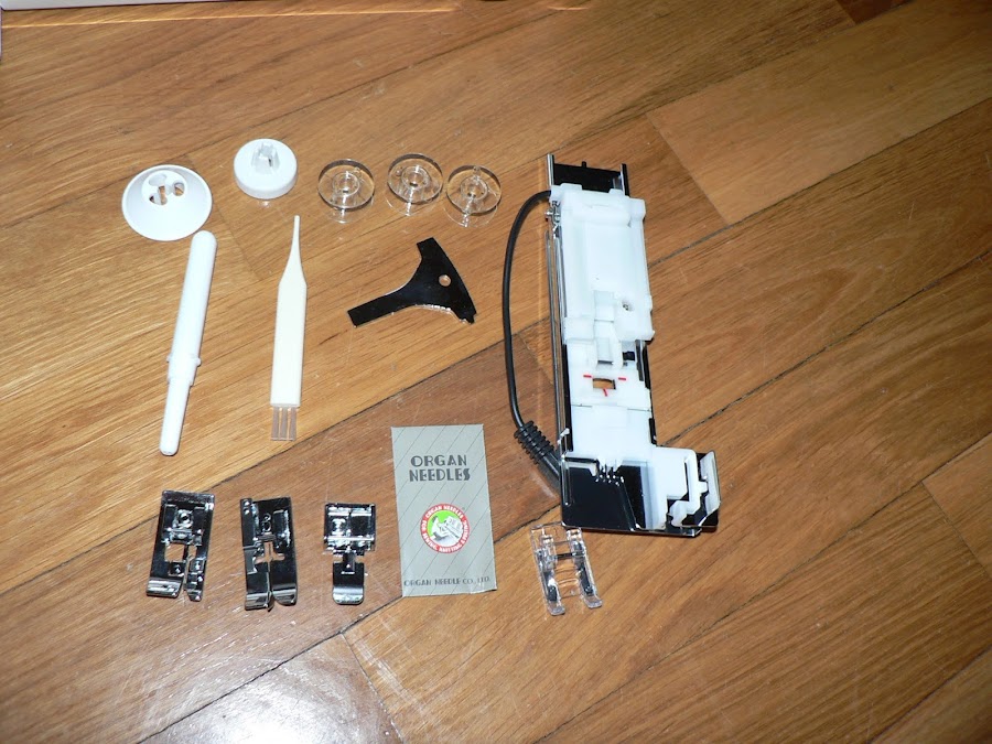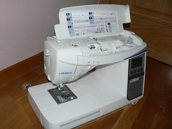 Y ya tenemos nuestra máquina completamente desempaquetada!!! Lista para usar!. La mía ya está acomodada en la mesa de trabajo y ya ha dado sus primeras puntadas. Por ahora os puedo decir que la primera impresión ha sido estupenda, pero que me queda mucho que probar y probar.