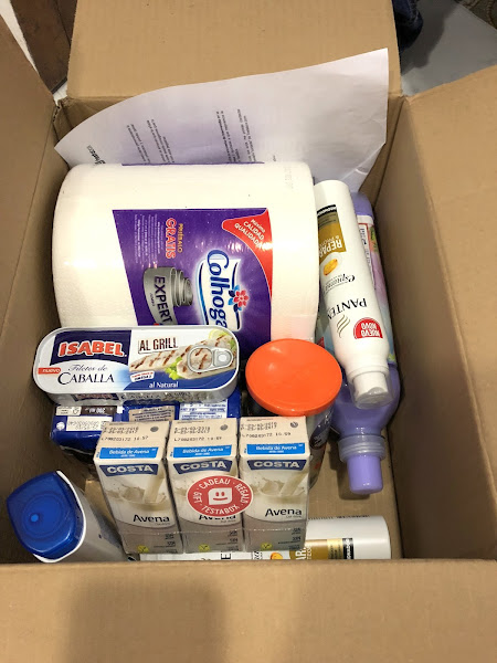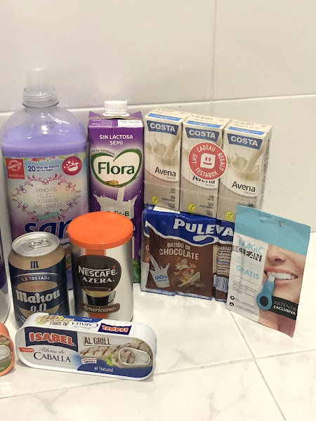 También han incluído papel de cocina, batidos de chocolate para mi peque, cerveza, latas de caballa de ISABEL (riquísimas), suavizante para la ropa, un rollo de papel absorvente de cocina de COLHOGAR, un litro de leche sin lactosa y ácido fólico de FLORA, unos botitos de leche de avena riquísima.