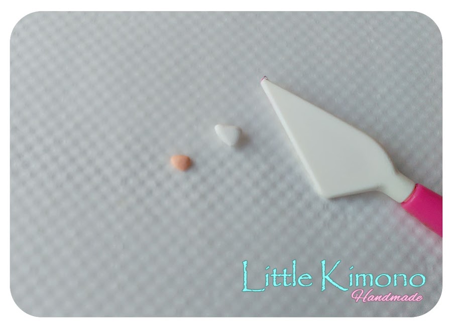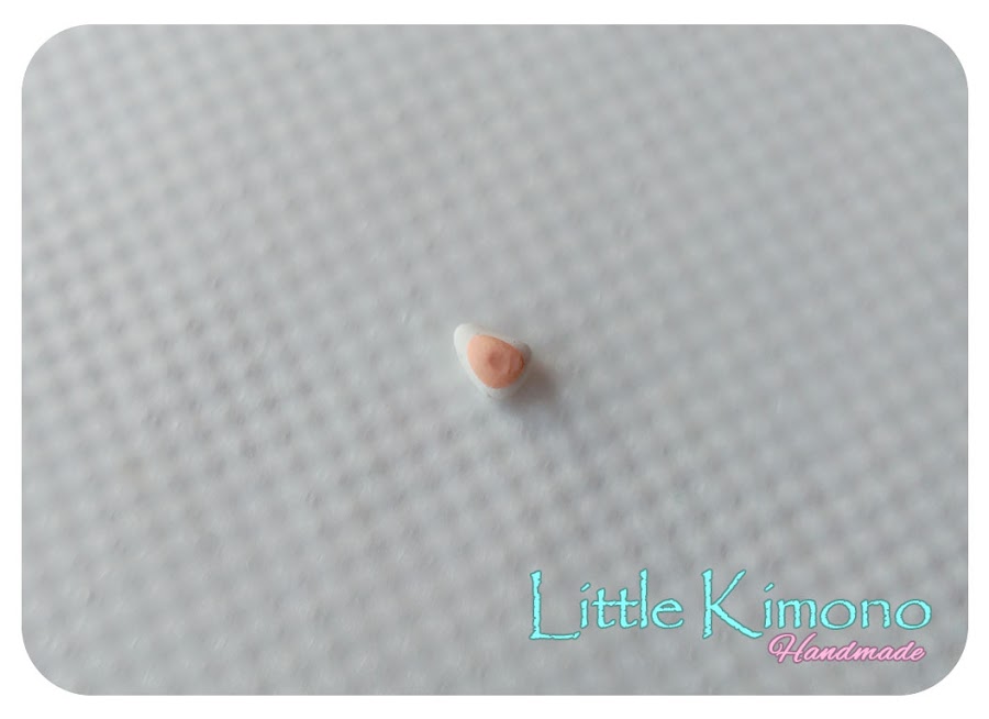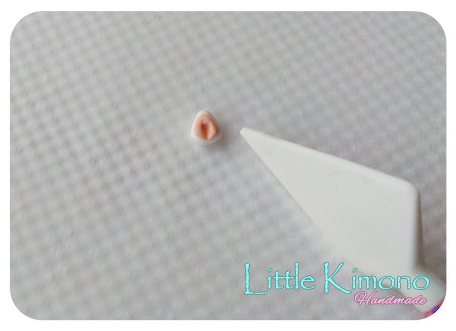 2. Ahora hacemos dos triángulos pequeños, uno blanco y uno más pequeño color rosita, colocamos el más pequeño sobre el blanco y con la herramienta "paleta cuchillo" hacemos una pequeña marca en la parte inferior.
