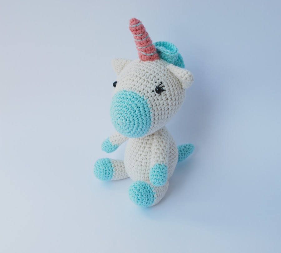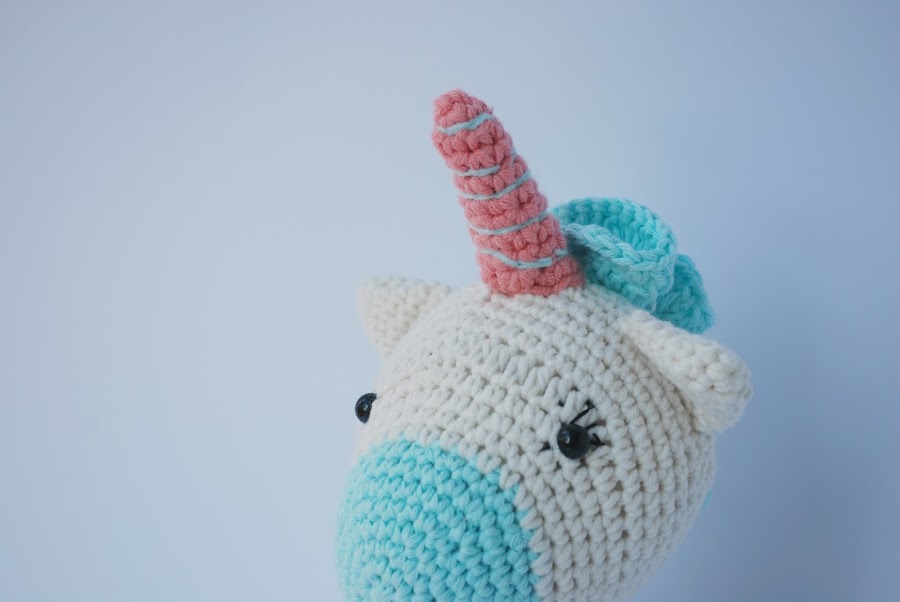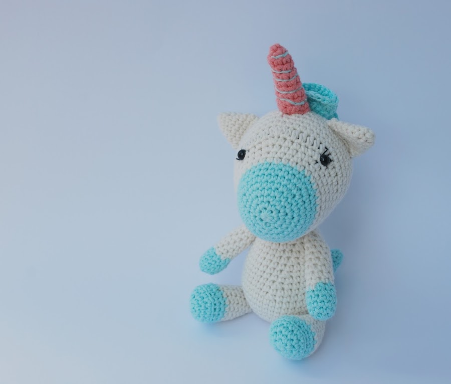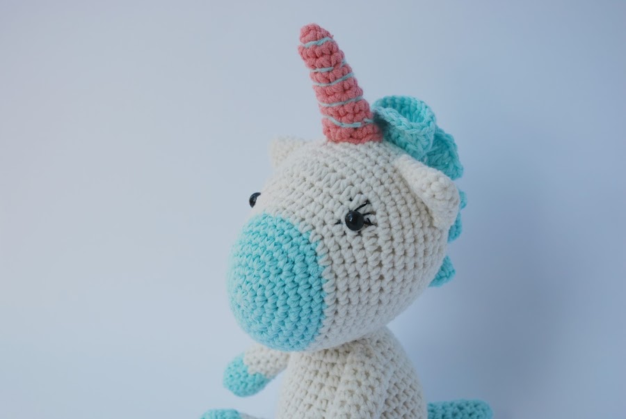 No sé cuantos unicornios diferentes he tejido ya, pero es que todos me parecen adorables y este, con la combinación de colores del azul turquesa y rosa me parece lo más de lo más.