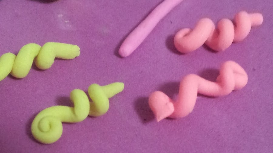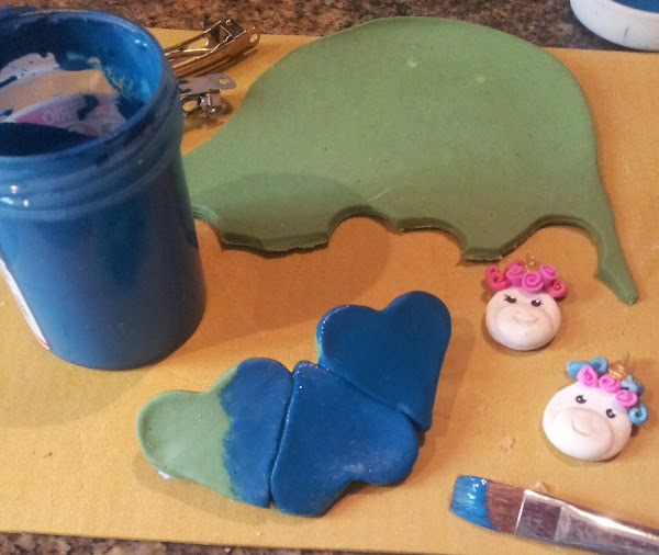 Utilicé esta masa verde, deje algunos en verde y pinte otros de azul.