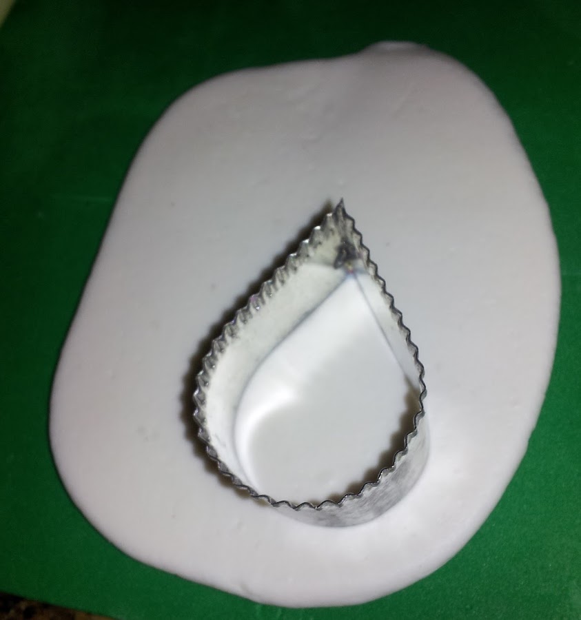 1.-Modelamos la carita es una especie de forma de gota redondeada de ambos lados. Pero también podemos con rodillo estirar pasta moldeable y utilizar un cortador de hojas.