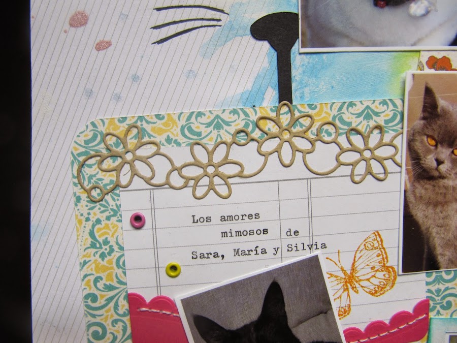 He utilizado las tarjetas como fondo y he ido trabajandolo como entiendo yo el project life, con pequeños adornos, cosido, escritos a máquina y a mano, con troqueles, con washi...